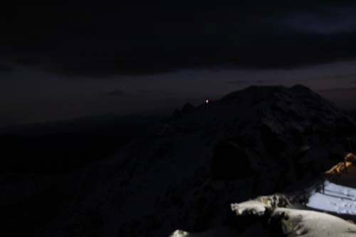 City lights of Azumino over Jounen range and the window ight of Sesshou Hütte -